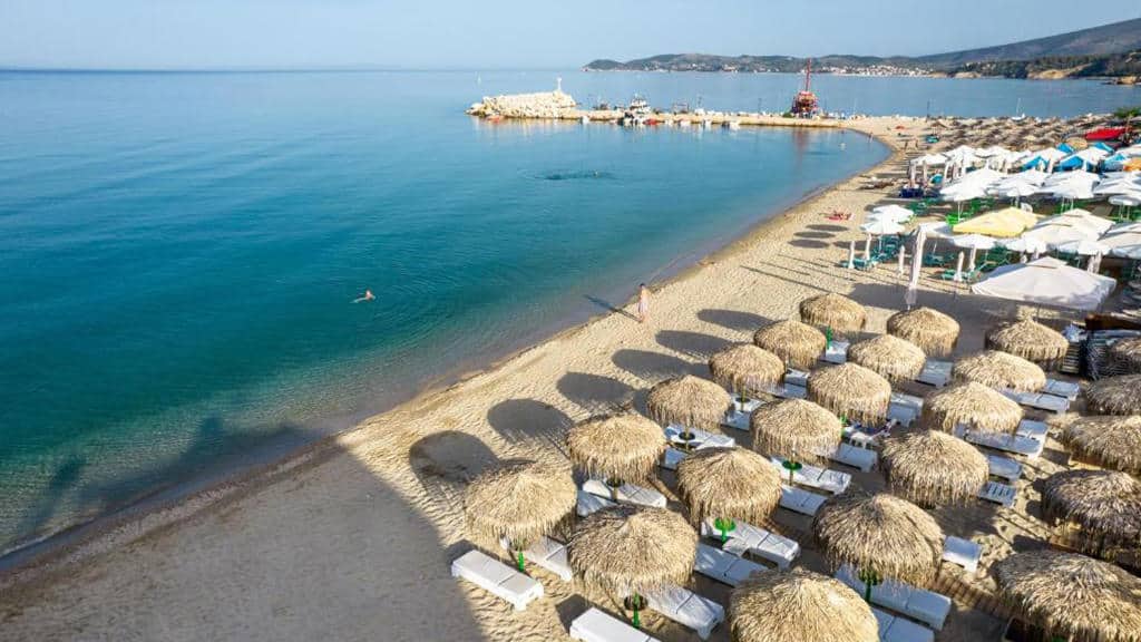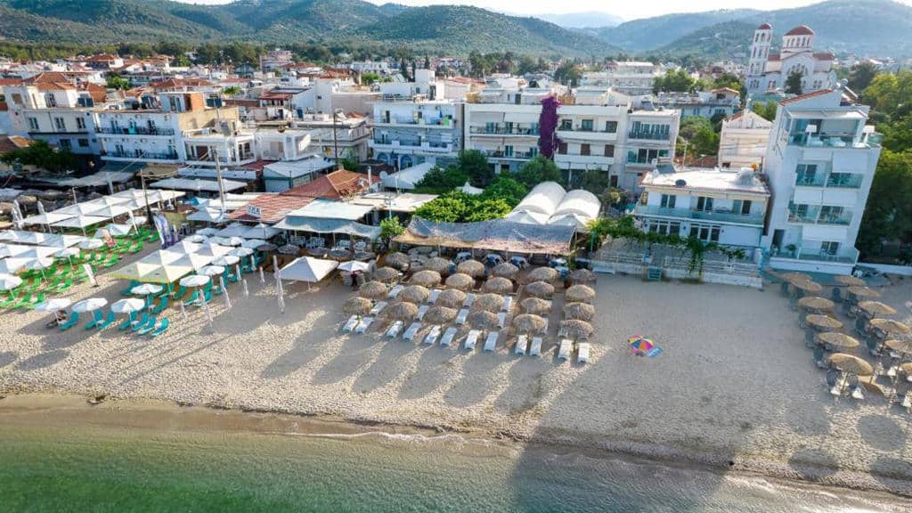 Na plaži, pripada hotelskom kompleksu Rachoni Resort koji se nalazi na jednoj od najlepših lokacija na Tasosu, u letovalištu Skala Rahoni, 12 km od Limenasa, glavnog grada Tasosa. Usluga polupansion...