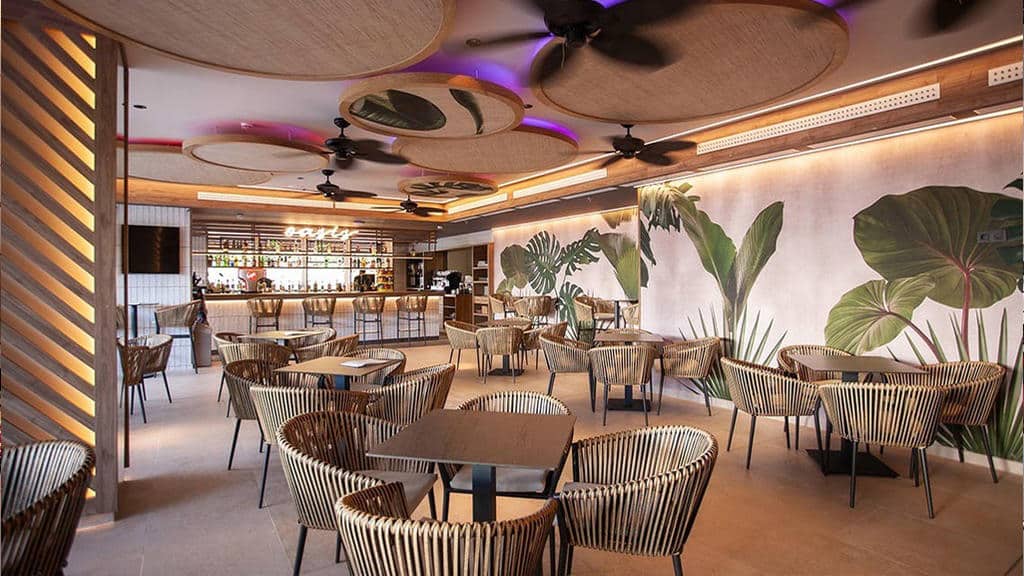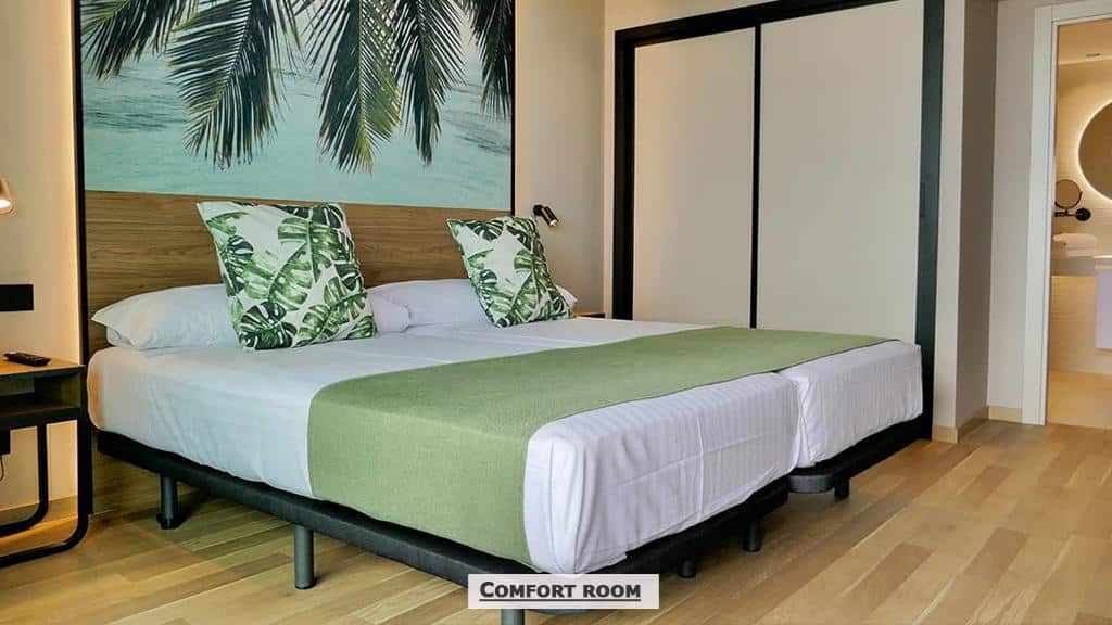 Plaža Levante udaljena je oko 10 minuta hoda, odnosno 700m od hotela. Ležaljke I suncobrani su uz doplatu na licu mesta.