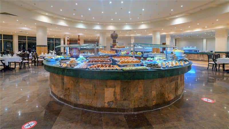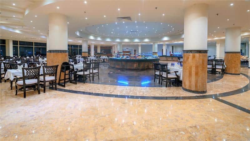 Od hotelskih sadržaja gostima je na raspolaganju: Glavni restoran, 2 spoljašnja bazena od kojih jedan dečiji, bar na plaži, bar na bazenu, Wifi u jadvni delovima hotela, teren za odbojku, teren za tenis, 1 multifunkcionalni teren za sportove, akva centar, fitnes centar, sto za bilijar i za stoni tenis, dečiji centar, više prodavnica(market, suvenirnica, parfimerija…), SPA i wellness centar sa hamamom, frizerski salon, aktivna animacija za odrasle i decu.