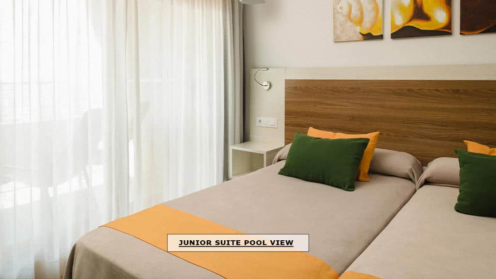 Junior Suite Pool View (balkon ili terasa) – kapaciteta od jedne odrasle osobe do najviše troje odraslih I jednog deteta ili dvoje odraslih I dvoje dece do 8,99 godina.