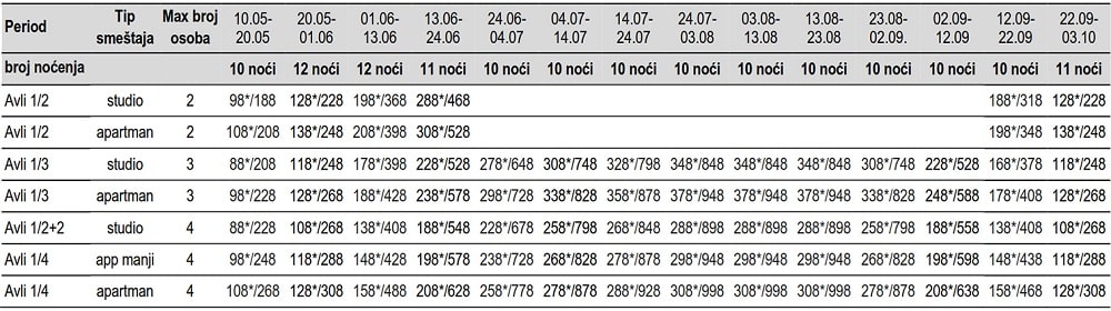 • Cena bez * predstavlja cenu najma smeštaja PO SMEŠTAJNOJ JEDINICI.