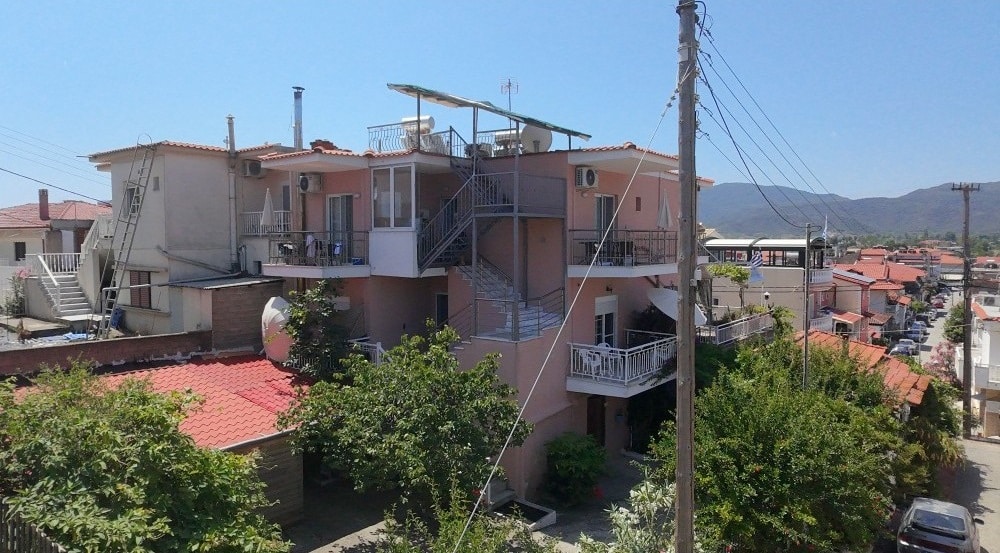 Nalazi se na 170m od plaže u starom delu Sartija. Studiji za 2-4 osobe se nalaze na drugom spratu i neki imaju prelep panoramski pogled na more i Sarti.