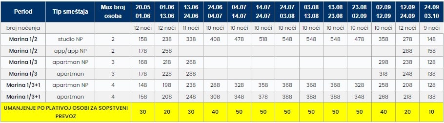 • Cene u tabeli su PO OSOBI i predstavljaju paket aranžman sa autobuskim prevozom i smeštajem za navedeni broj noćenja.