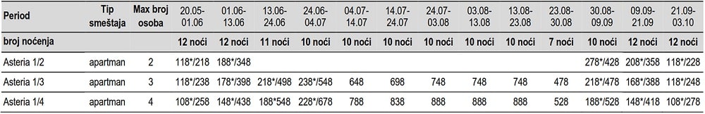 • Cena bez * predstavlja cenu najma smeštaja PO SMEŠTAJNOJ JEDINICI.