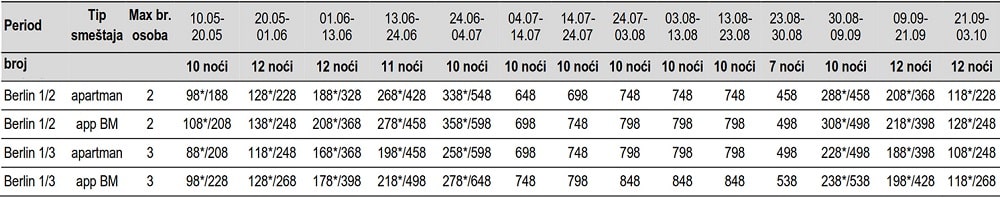 • Cena sa “zvezdicom” * predstavlja cenu paket aranžmana (smeštaj+prevoz) PO OSOBI.
