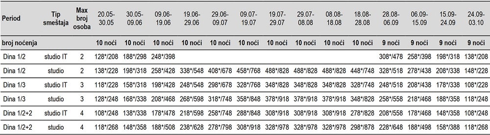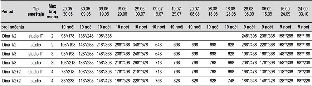 • Cena bez * predstavlja cenu najma smeštaja PO SMEŠTAJNOJ JEDINICI.
