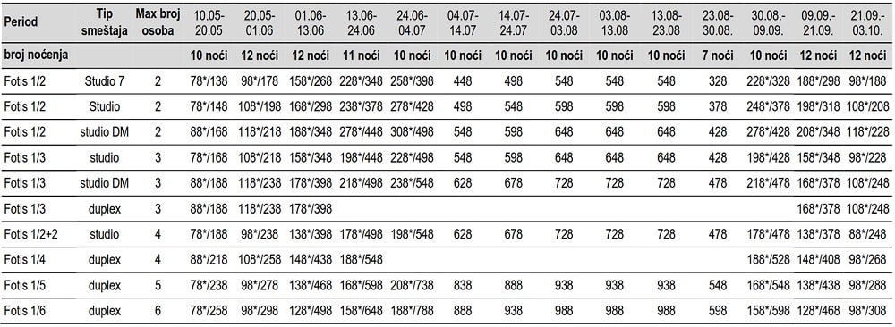 • Cena bez * predstavlja cenu najma smeštaja PO SMEŠTAJNOJ JEDINICI.