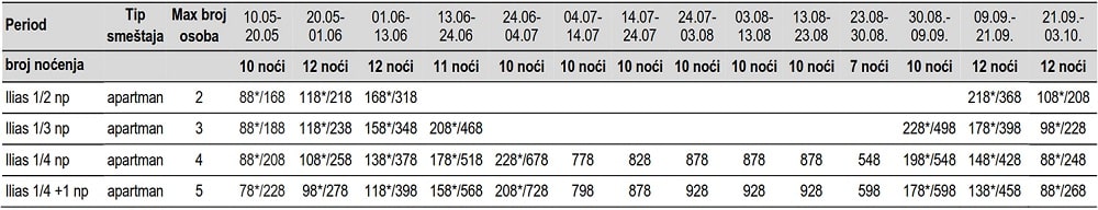 • Cena sa “zvezdicom” * predstavlja cenu paket aranžmana (smeštaj+prevoz) PO OSOBI.