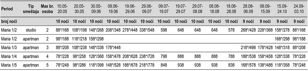 • Cena bez * predstavlja cenu najma smeštaja PO SMEŠTAJNOJ JEDINICI.