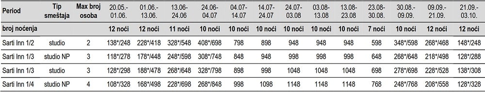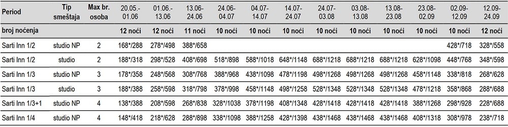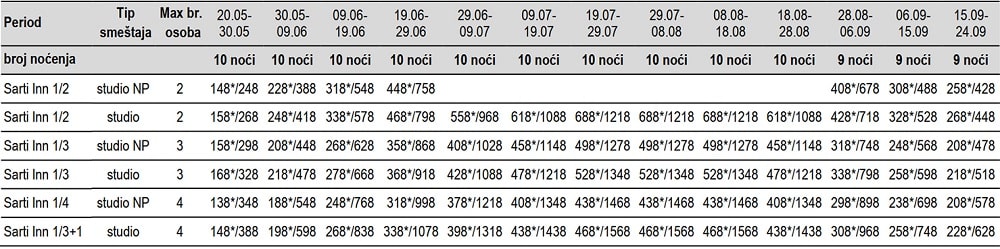 • Cena sa “zvezdicom” * predstavlja cenu paket aranžmana (smeštaj+prevoz) PO OSOBI.