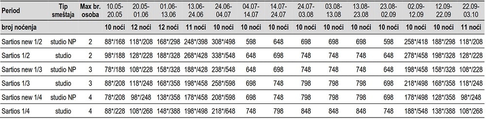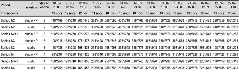 • Smeštaj na bazi 7/10/11/12 noćenja u izabranom objektu u studijima/apartmanima/mezonetama;