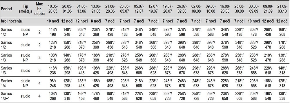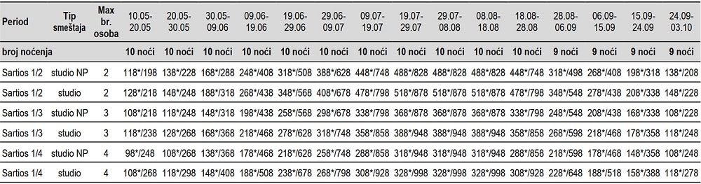 • Cena sa “zvezdicom” * predstavlja cenu paket aranžmana (smeštaj+prevoz) PO OSOBI.