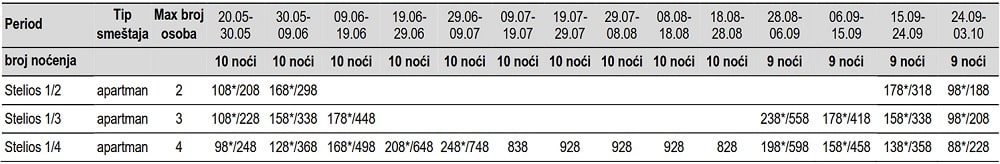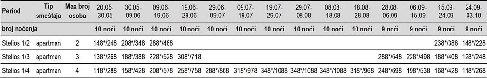 • Smeštaj na bazi 7/10/11/12 noćenja u izabranom objektu u studijima/apartmanima/mezonetama;