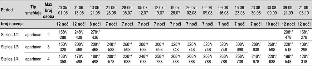 • Cena bez * predstavlja cenu najma smeštaja PO SMEŠTAJNOJ JEDINICI.