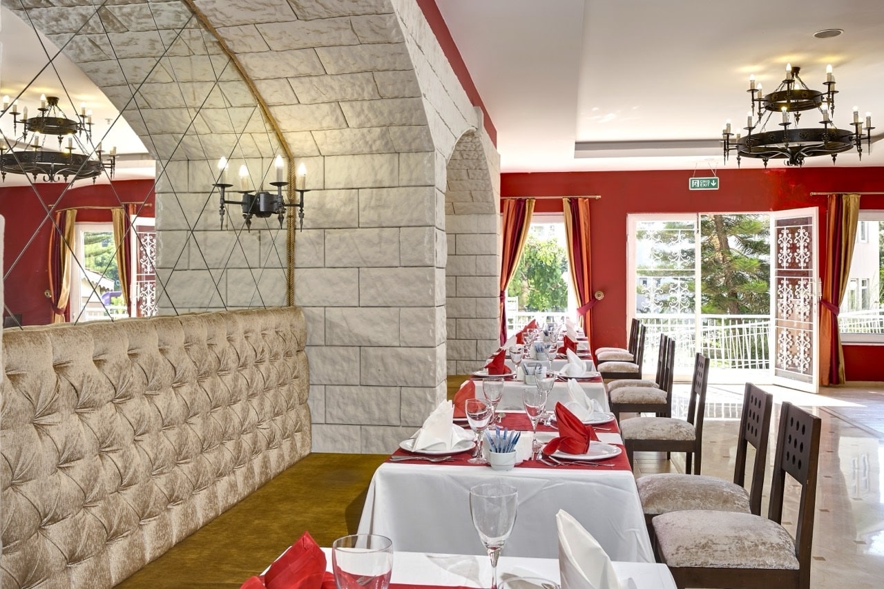 Glavni i 2 a’la carte restorana (italijanski i turski uz rezervaciju jednom u toku boravka jedan od restorana besplatno), 3 spoljašnja bazena, unutrašnji bazen, 2 vodena tobogana, 5 barova, sala za konferenciju (70-100 osoba), besplatan internet, teretana, tursko kupatilo, sauna, animacija, odbojka na pesku, stoni tenis, pikado, aerobik, akvabik, boćanje, diskoteka, 2 dečija bazena, dečije igralište, dečiji klub (4-12 godina). Plaća se: frizer, doktor, masaža, usluge pranja veša, spa centar, motorni vodeni sportovi.