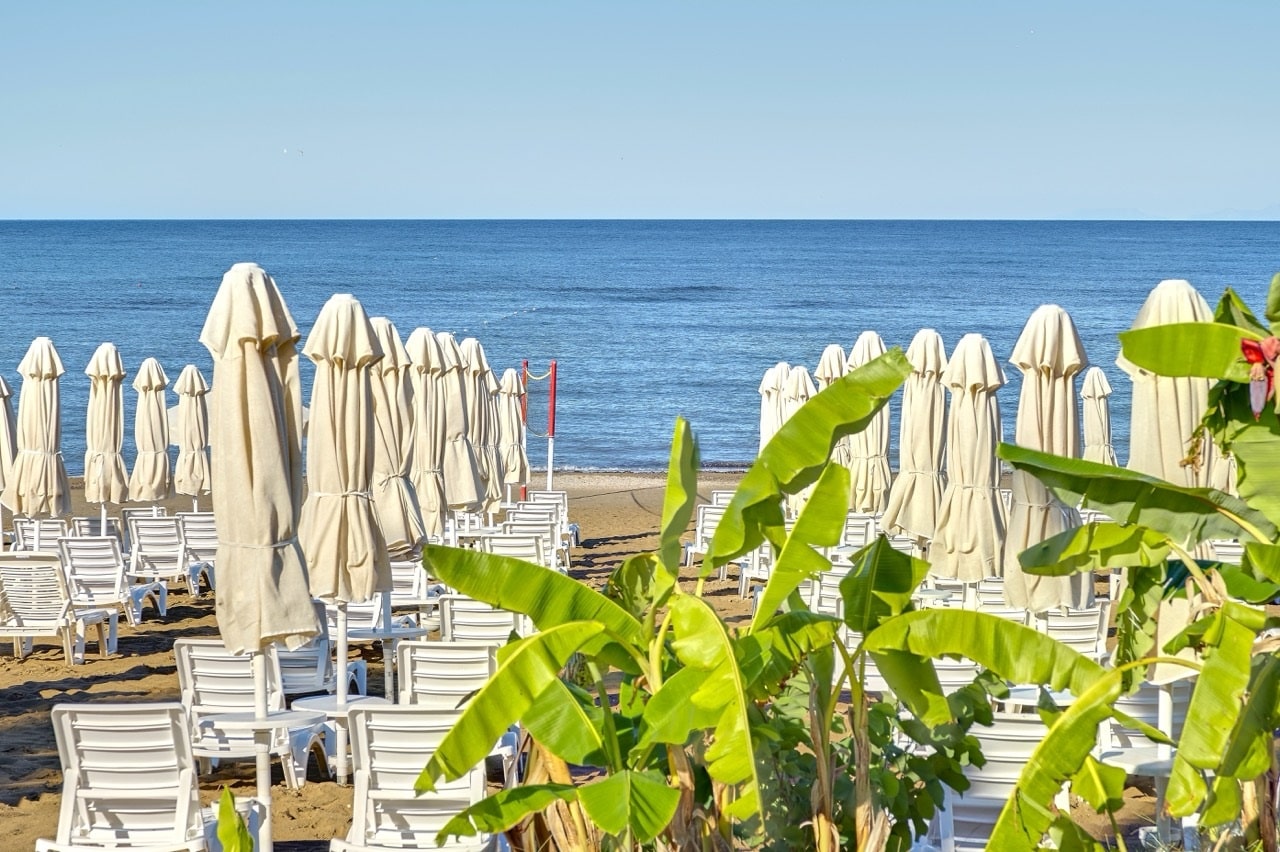 Plaža je sopstvena, peščana, 300 m udaljena od hotela. Ležaljke, suncobrani, peškiri i bar na plaži su besplatni za goste hotela. Autobus do plaže besplatno (od 10:00-16:00) dok su dušeci uz doplatu.