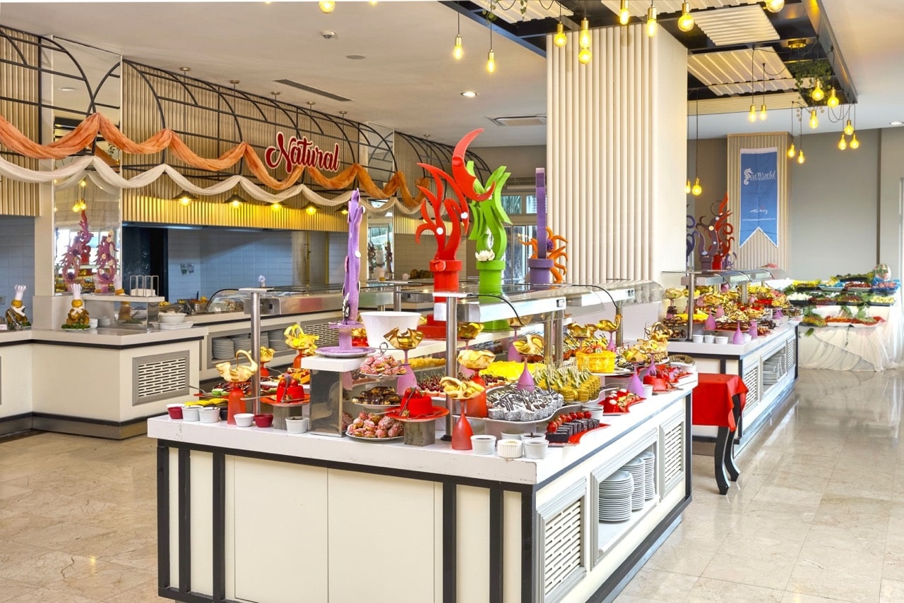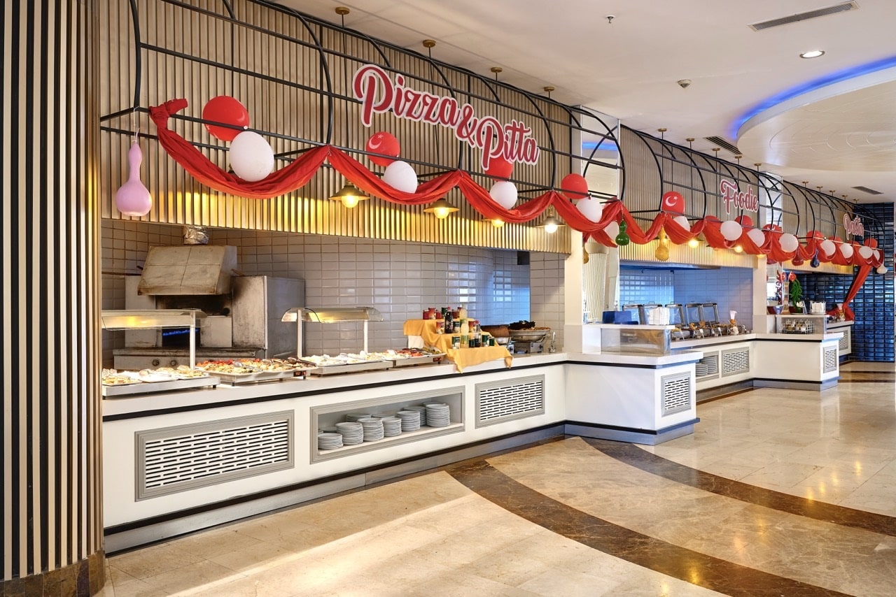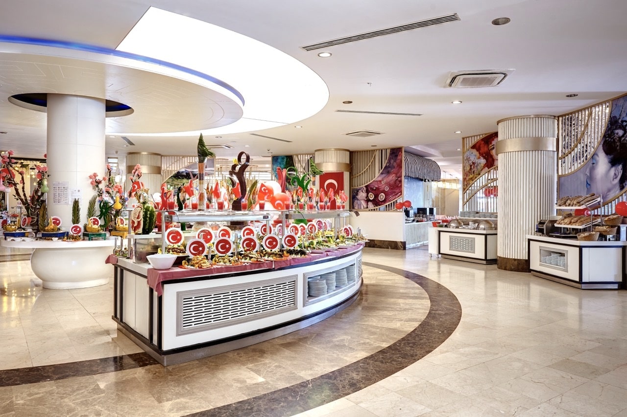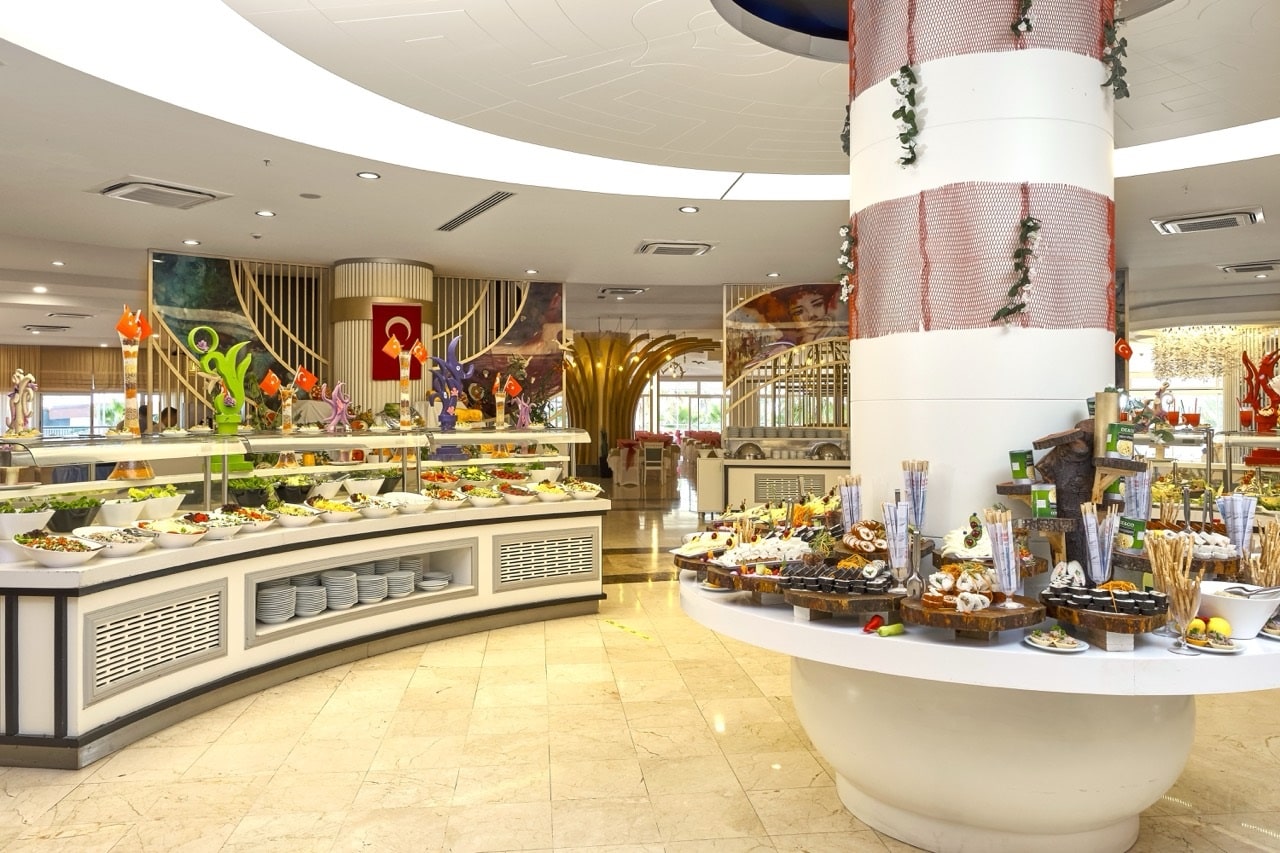 Hotelski sadržaj: Glavni restoran, 3 a la carte restorana (italijanski, turski i azijski-jednom tokom boravka besplatno), 6 barova, 2 bazena, 4 vodena tobogana, SPA centar, unutrašnji bazen, bežični internet u lobiju (besplatno), 4 konferencijske sale (50-1.200 osoba), boćanje, stoni tenis, akvabik, animacioni program, teretana, odbojka na plaži, tenis, sauna, parno kupatilo, tursko kupatilo, aerobik, iznajmljivanje teniskih reketa i loptica, pikado, diskoteka (ulaz), dečiji bazen, igralište, dečiji ugao u restoranu, mini klub (4-12 god.). Plaća se: masaža, usluge frizerskog salona, jacuzzi, bilijar, motorni sportovi na vodi, jedrenje (sa licencom), osvetljenje teniskog terena, kuglanje, ronjenje, usluge doktora i dadilje.