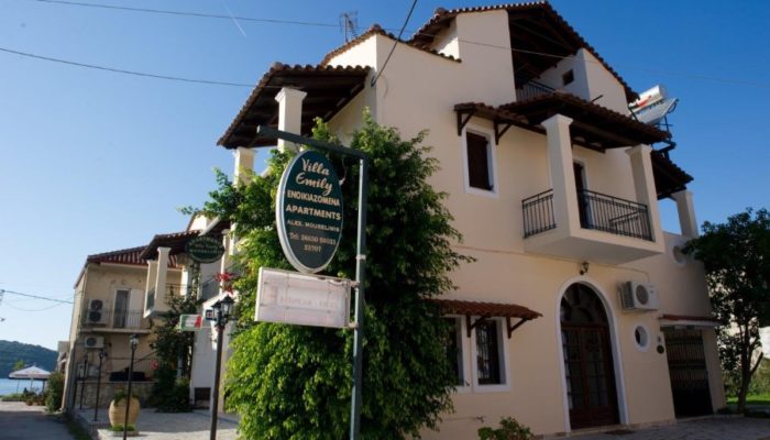 Arhitektura vile Emily je spoj modernog i tradicionalno-primorskog stila. Zbog svoje centralne pozicije, blizine marketa, taverni i barova, idealna je za porodice, kao i za parove koji žele da kvalitetno provedu svoje letovanje u Grčkoj. U okviru vile se nalaze studiji, apartmani i duplexi, sa potpuno opremljenim kuhinjama, kupatilom i terasom sa garniturom za sedenje.
