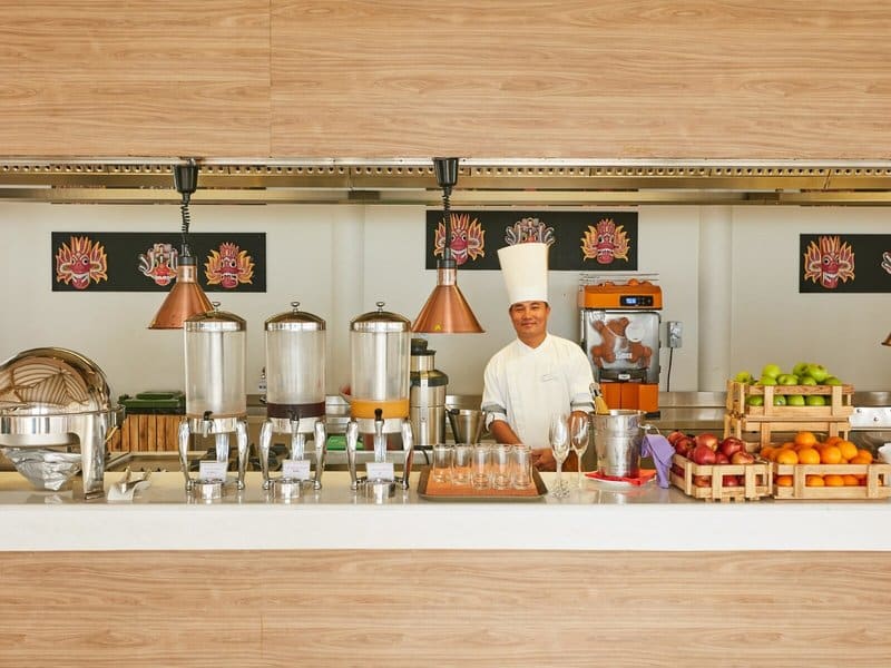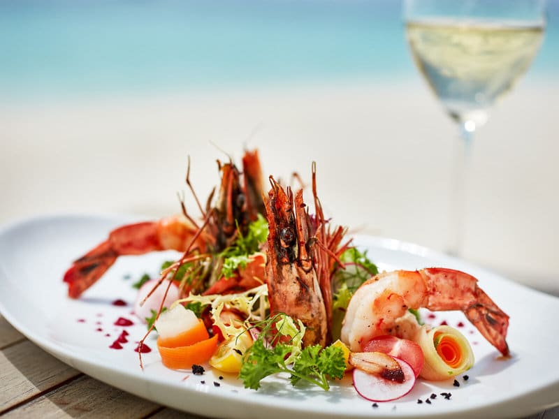 All Inclusive koncept obuhvata doručak, ručak, večeru, užine i pića tokom dana. Glavni restoran Aqua Orange nudi bife sa internacionalnim i azijskim specijalitetima, dok su Grouper Grill i Roma à la carte restorani za večeru uz rezervaciju. Wine Cellar je ekskluzivan prostor za odrasle. Tu su i bar uz bazen, kao i lounge bar otvoren tokom celog dana.