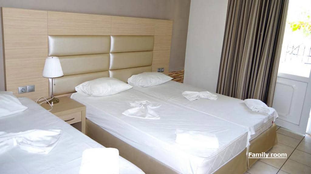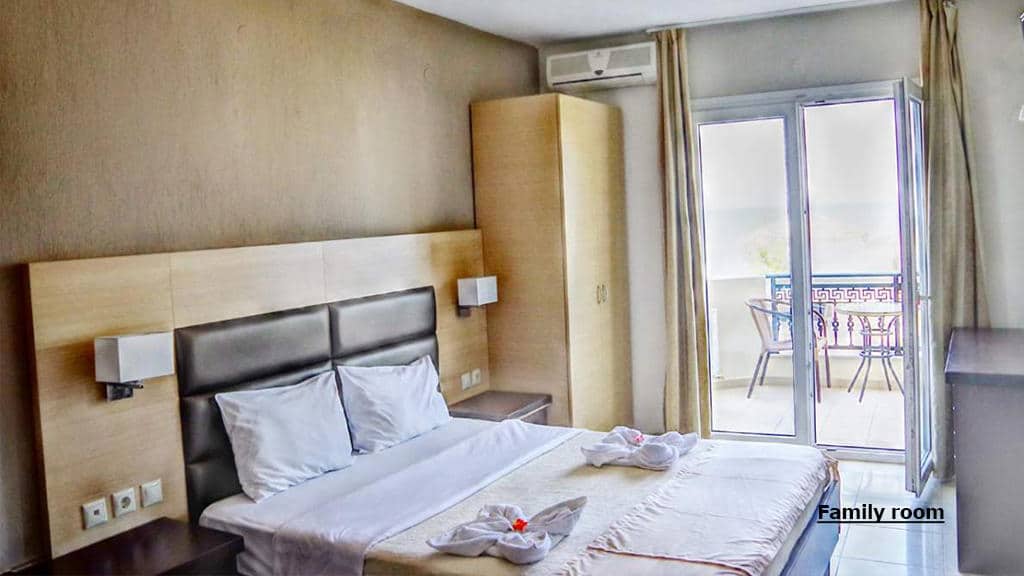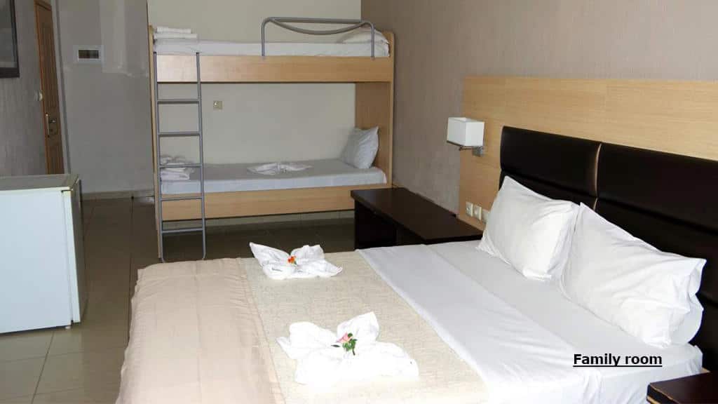 Porodične sobe su površine oko 40m2. Poseduju spavaći deo sa francuskim ili dva odvojena ležaja, dok se u dnevnom boravku nalazi sofa i čajna kuhinja. Mogu da ugoste dve odrasle osobe i dvoje dete ili tri odrasle osobe i jedno dete. Svaka soba ima kupatilo tuš/WC, TV, klima uređaj, opremljenu čajnu kuhinju, mini frižider, fen i balkon/terasu.