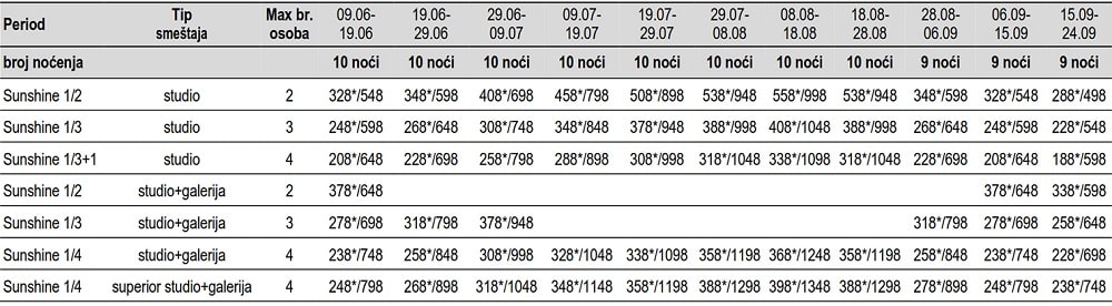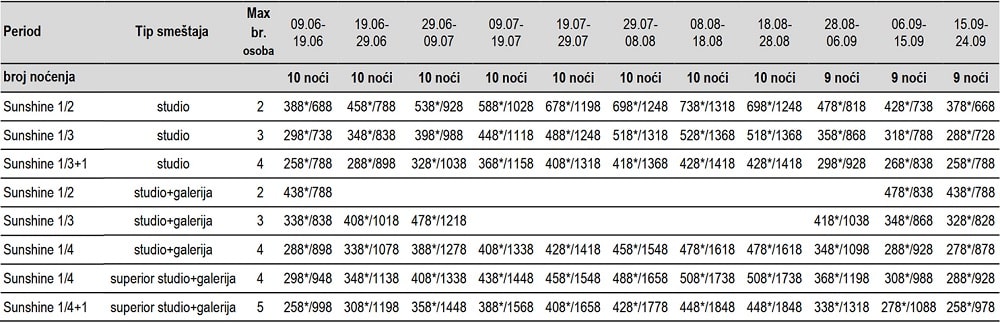 • Cena sa “zvezdicom” * predstavlja cenu paket aranžmana (smeštaj+prevoz) PO OSOBI.