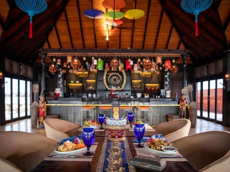 Kvalitetan resort okružen tropskom zelenilom, tirkiznom vodom i belim peskom; ima 120 luksuznih vila (na plaži i nad vodom), spa, ronilački centar, nekoliko restorana i barova.