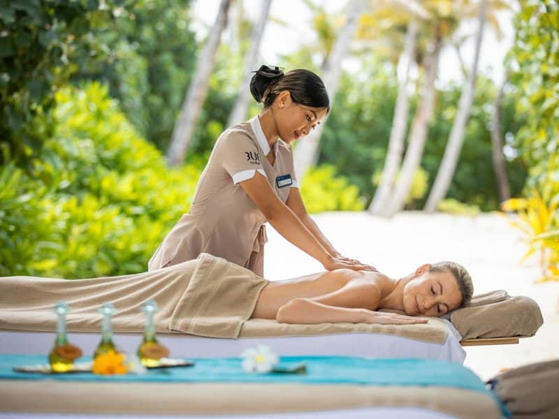 BLUEfit® program obuhvata jutarnje časove joge, meditaciju, fitnes radionice i personalizovane vežbe. Spa centar nudi tretmane relaksacije i rituale za dvoje. Aktivni gosti mogu uživati u vodenim sportovima, dok su bazeni i privatne plaže savršene za opuštanje.