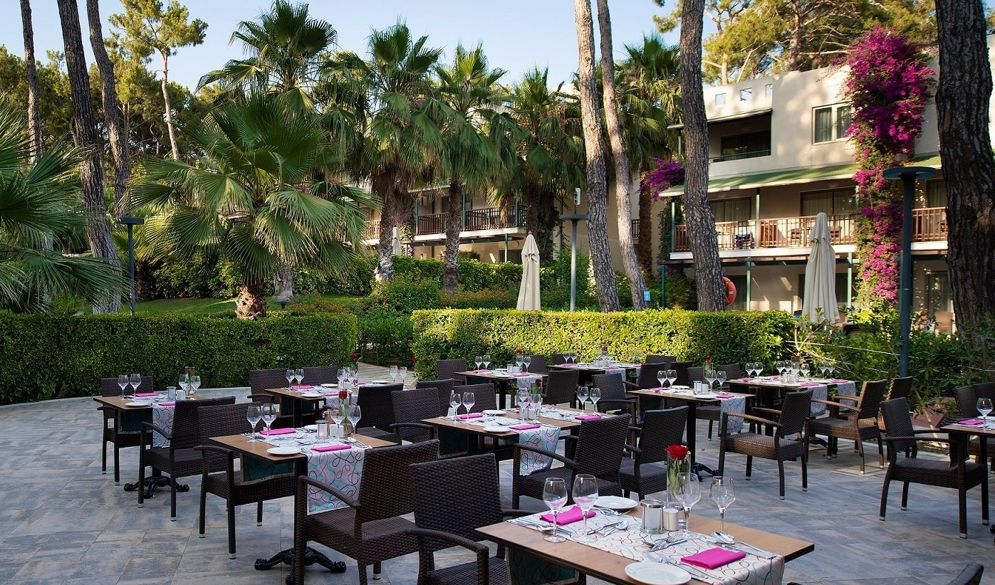 Lokacija: Hotel je udaljen 65 kilometara od aerodroma u Antaliji, 3.5 kilometra od Side-a, nalazi se u Sorgunu na samoj obali mora. Sagrađen je 1988. godine a renoviran je 2017. godine i zauzima površinu od 80.000 m².