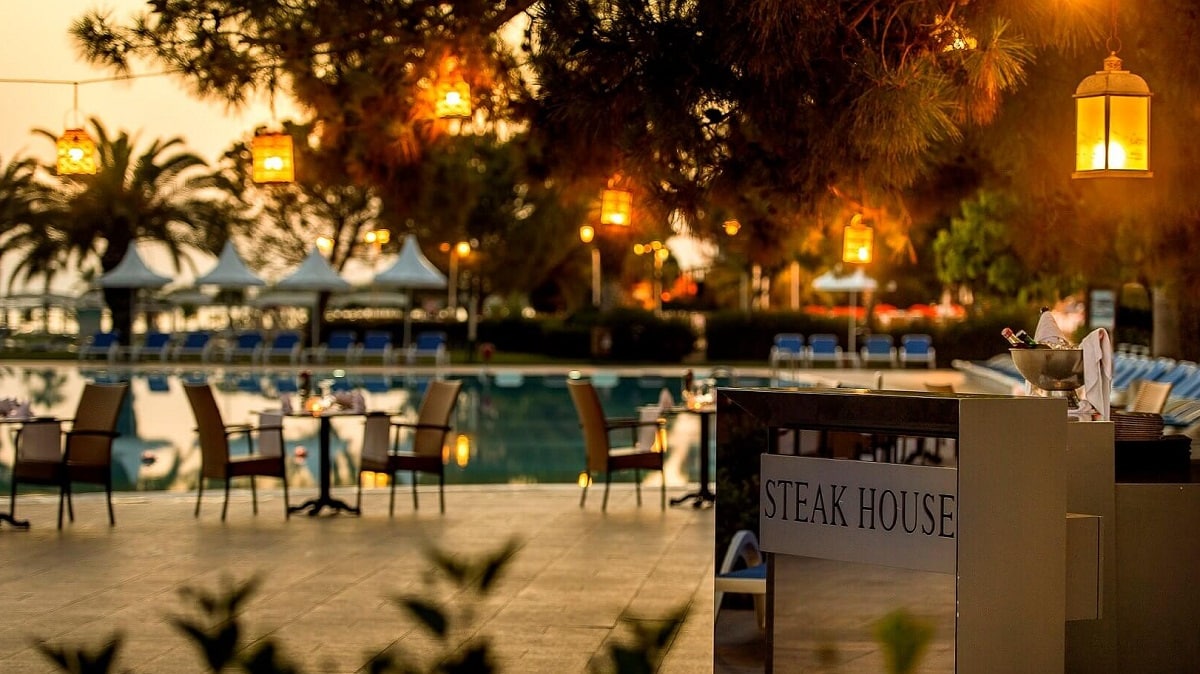 Hotelski sadržaji: 2 glavna (od kojih je jedan a la carte samo za goste koji borave u villama) i 6 a’la carte restorana (turski, kineski, italijanski, plodovi mora – jednom u toku boravka besplatno uz rezervaciju, steak house i bengovil – doplaćuju se), besplatan internet, sala za konferencije, 3 vodena tobogana, unutrašnji bazen, 3 otvorena bazena ( je za starije od 16 godina), 10 barova (jedan radi 24h), sauna, tursko kupatilo, parna soba, odbojka na pesku, stoni tenis, akvabik, aerobik, animacija, muzika uživo, teretana, 2 teniska terena, pikado, 2 dečija kluba (mini 4-12 godina i midi 12-16 sredinom sezone), 2 dečija bazena, dečiji meni, dečije igralište. Plaća se: internet kafe, video igre, bilijar, motorni sportovi na vodi, najam rekvizita za tenis i osvetljenje teniskog terena, masaža, usluge frizerskog i salona lepote, časovi ronjenja, usluge pranja, peglanja i hemijskog čišćenja veša, usluge doktora.