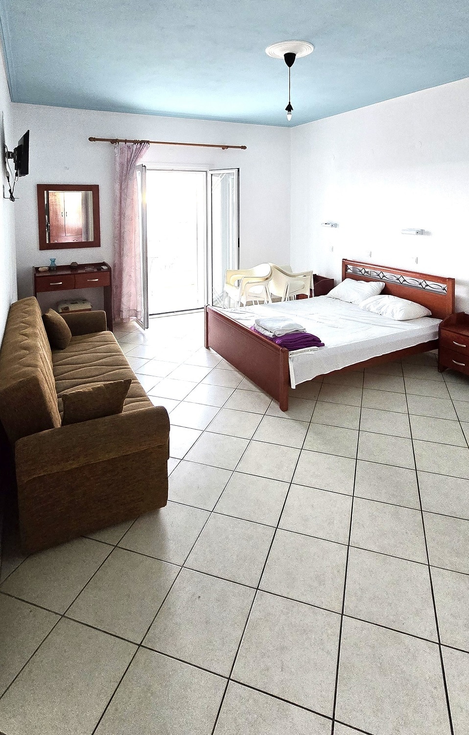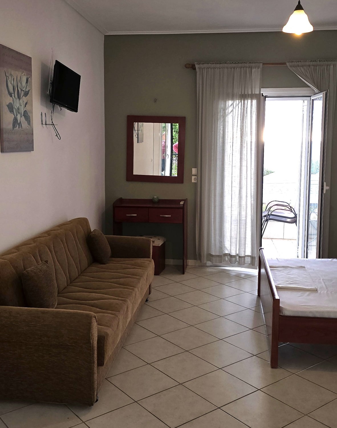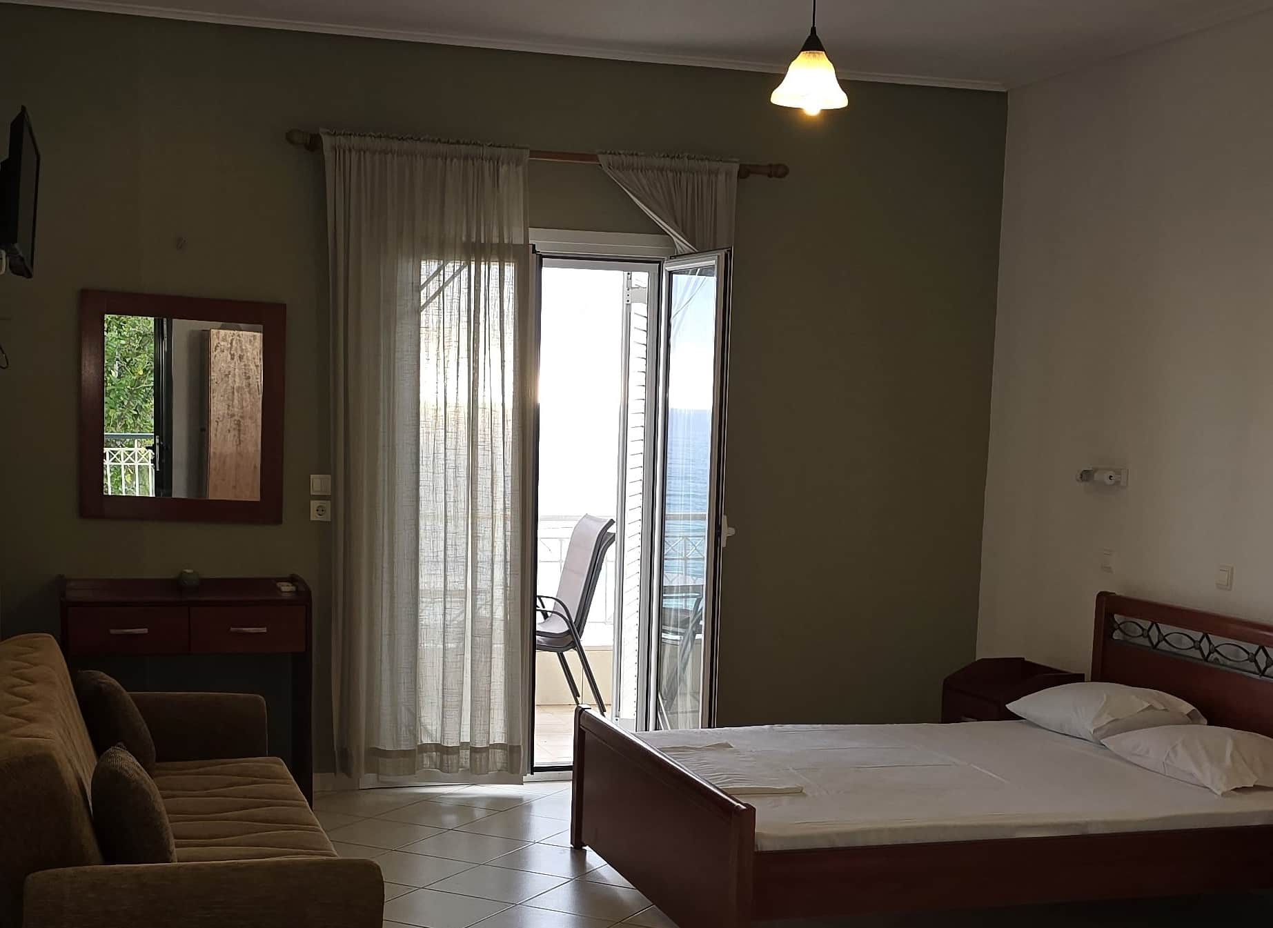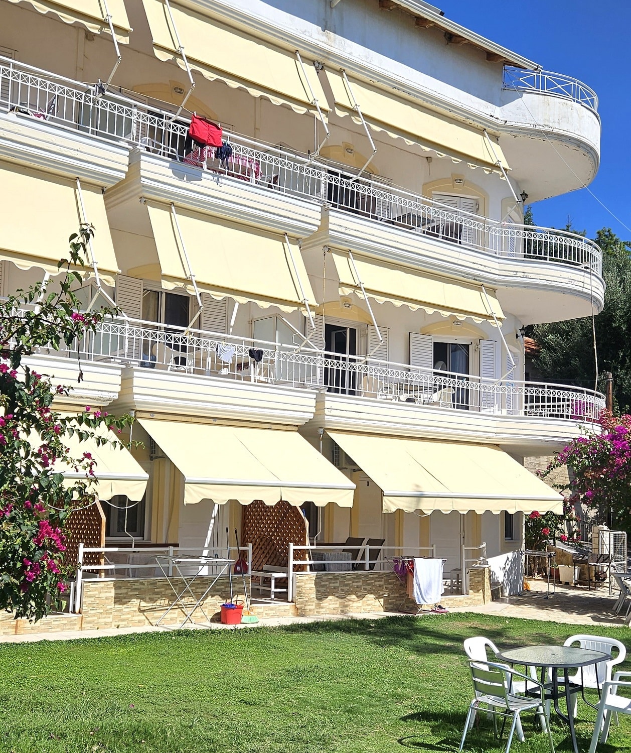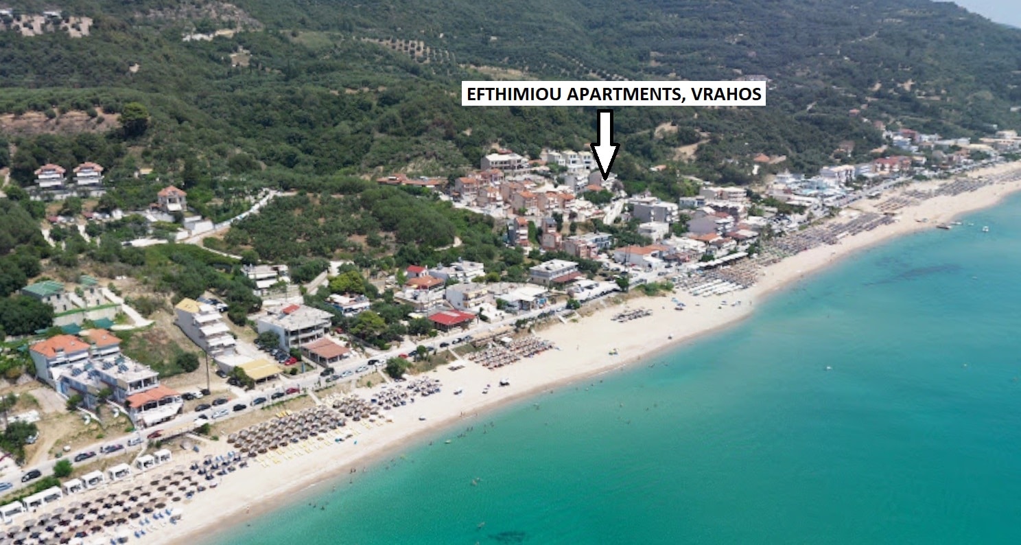 Efthimiou Apartments, pet friendly objekat sa dvorištem i roštiljem, privatnim parkingom i fantastičnim pogledom na more. Nalazi se u centralnom delu letovališta, na oko 120 metara od prelepe peščane plaže (blaga uzbrdica) i jedan je od retkih objekata koji prima male kućne ljubimce (do 10kg).