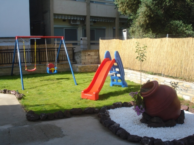 200 metara od prelepe peščane Agios Antonios plaže i 300 metara od centra i šetališta Potosa. Objakat u dvorištu sa maslinama, je prizemnog tipa, a u ponudi su kompletno opremljeni dvokrevetni i trokrevetni studiji...