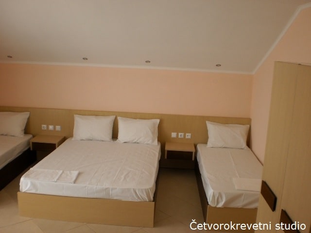 Vila poseduje dvokrevetne, trokrevetne i četvorokrevetne studije, smeštene u prizemlju, na prvom i drugom spratu.