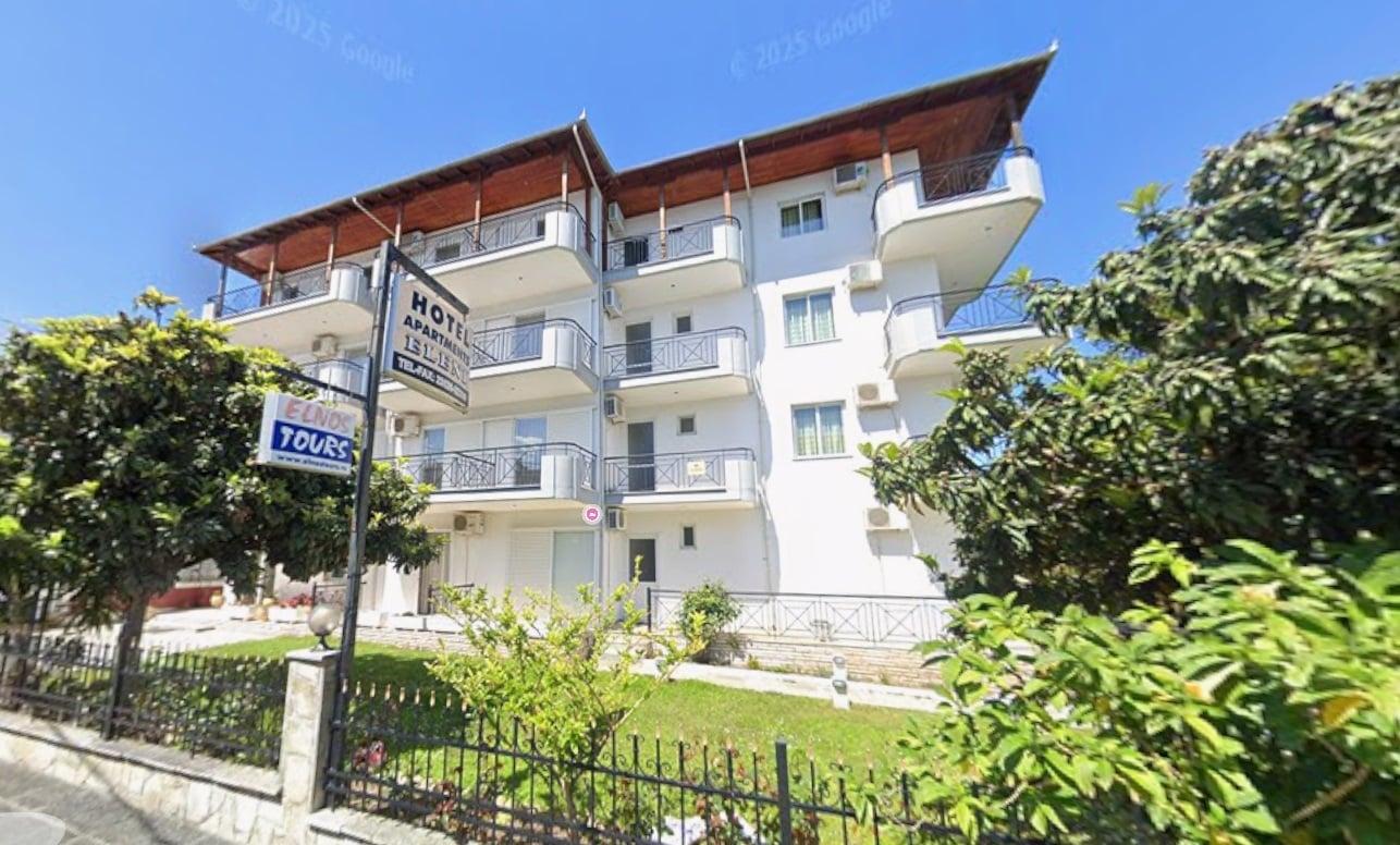 Nalazi se u centru Leptokarije, 40m od plaže, kompletno renovirani dvokrevetni, trokrevetni i četverokrevetni studiji kao i četverokrevetni i petokrevetni apartmani...