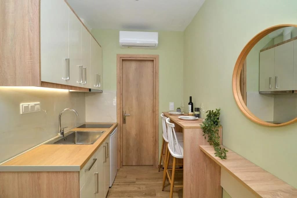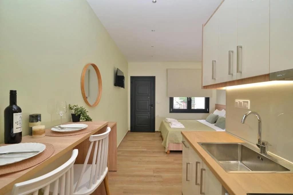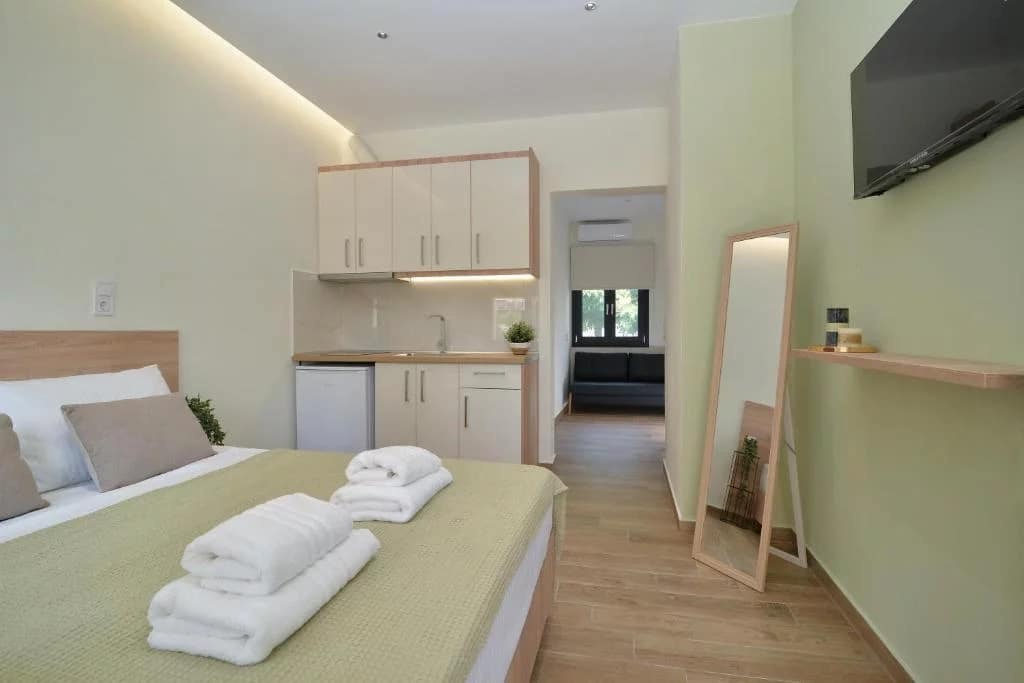 U ponudi su luksuzno opremljeni dvokrevetni, trokrevetni i četvorokrevetni studiji koji su smešteni u blago izdignutom prizemlju i na prvom spratu.