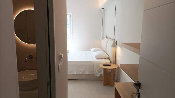 ČETVOROKREVETNI DUPLEX: Četvorokrevetni duplex se satoji od 2 spavaće sobe u kojima se nalazi ili francuski ležaj ili dva standardna ležaja, ormar, noćni sto sa ogledalom i dva stočića pored kreveta, svaka soba ima svoje kupatilo. U trećoj prostotriji se nalazi kuhinjski deo, koji u svom sastavu ima manji šporet sa dve ringle, aspiratorom, i manjim frižiderom. Duplex poseduje terasu.