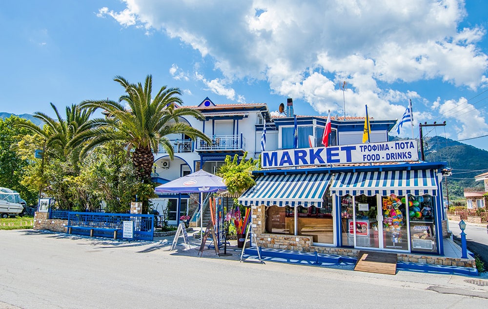 Opis: Vila poseduje dvokrevetna I trokrevetna studija, smeštena u prizemlju, prvom ili drugom spratu, od kojih svaki ima direktni ili bočni pogled na more. U svakoj smeštajnoj jedinici postoji mogućnost dodavanja pomoćnog ležaja. Svaki studio poseduje čajnu kuhinju, kupatilo/wc, peškire, terasu, WiFi internet, TV, klima uređaj (uz doplatu na licu mesta od 6e dnevno) I sef (uz doplatu na licu mesta od 1e dnevno). U prizemlju vile se nalazi supermarket.