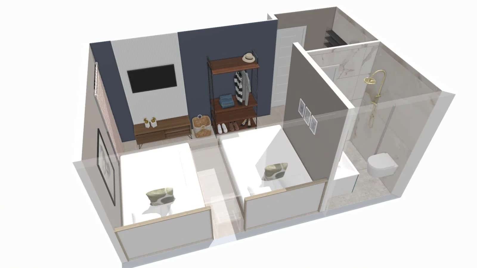 Fotografije renoviranih smeštajnih jedinica u galeriji su render prikazi budućeg izgleda. Po završetku opremanja, pred sezonu, objavićemo autentične fotografije objekta.
