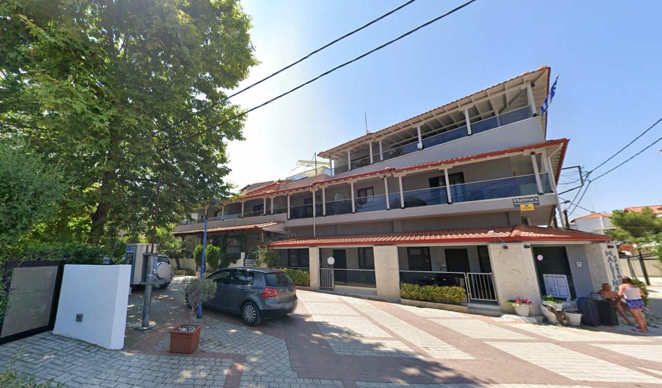 Nedaleko od centra letovališta Hanioti i na oko 150 metara udaljenosti od plaže. Kvalitetna, dobro pozicionirana vila poseduje dvokrevetne studije, dvokrevetne i trokrevetne garsonjere kao i četvorokrevetni duplex..