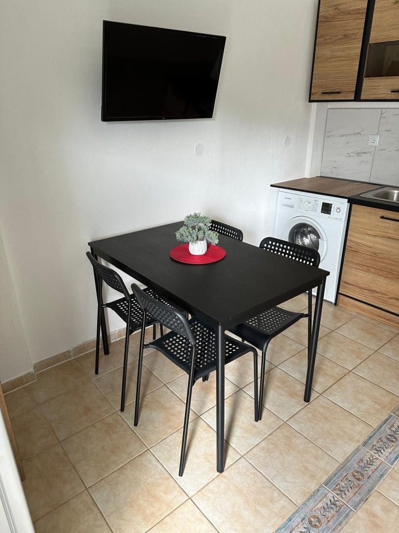 Apartmani su kompletno opremljeni, poseduju kuhinju sa frižiderom i veš mašinom, kupatilo, klima uređaj (doplaćuje se na licu mesta 5 EUR po danu – podložno promeni) i TV. Vila je odlično pozicionirana, idealna za porodice koje traže miran i udoban smeštaj.