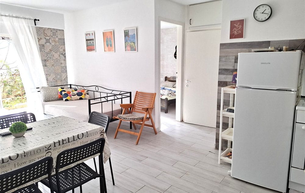 Svaka smeštajna jedinica ima opremljenu kuhinju, kupatilo i klima uređaj čije se korišćenje dodatno naplaćuje 5 EUR po danu (podložno promeni).