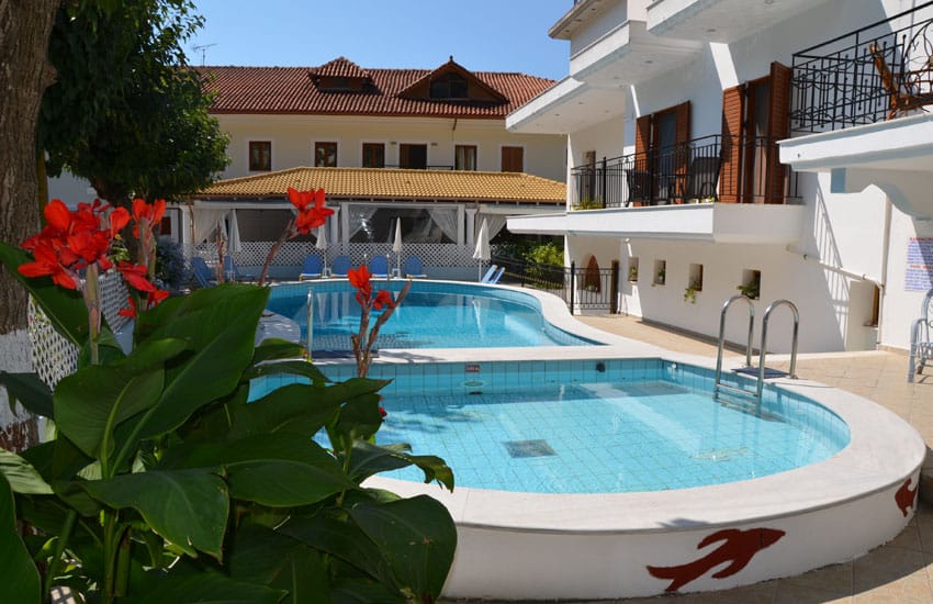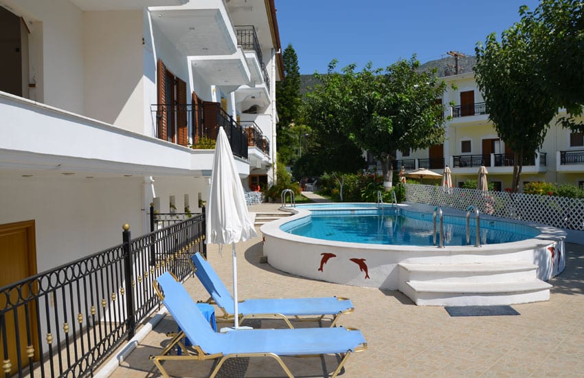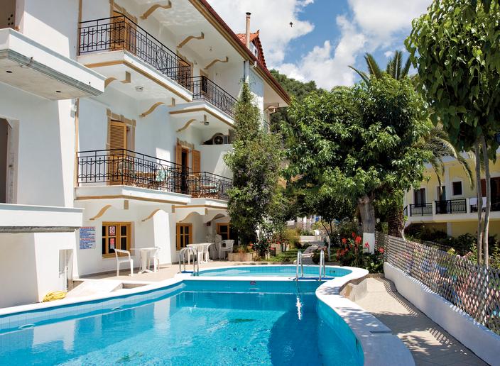 Od plaže Piso Krioneri vila je udaljena oko 800m, a od plaže Krioneri oko 900m, kompleks smešten u prelepom zelenilu sa bazenom i parkingom. U našoj ponudi su dvokrevetni i trokrevetni studiji...