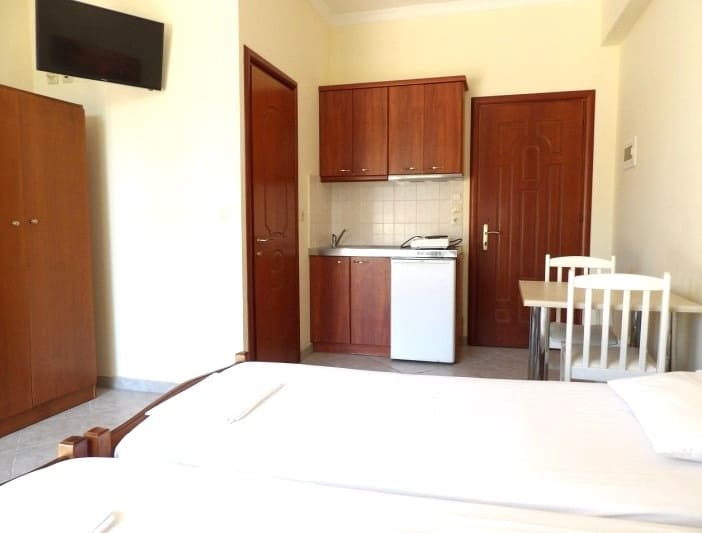 1/4 studio – u jednoj prostoriji čajna kuhinja, jedan bračni i dva obična ležaja