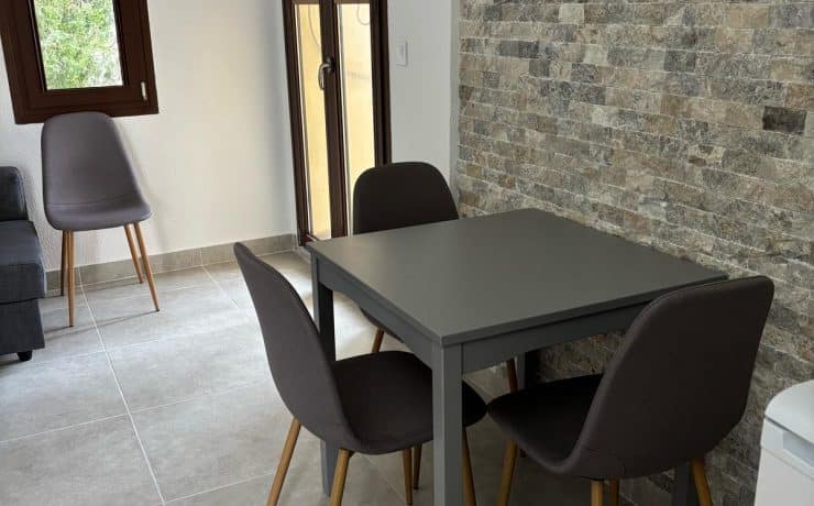 Apartmani su sledeceg rasporeda: jedna soba je dnevni boravak sa kuhinjom i po dva ležaja koji se rasklapaju (širina rasklopnjenog ležaja je oko 110cm), a druga soba je spavaća soba sa bračnim krevetom. Svaka smeštajna jedinica sadrži kompletno opremljenu čajnu kuhinju u okviru sobe, kupatilo (tuš/WC), terasu i LCD-TV. Sve smeštajne jedinice poseduju klima uređaj čije se korišćenje naplaćuje na licu mesta 5 EUR dnevno (podložno promeni). Vila ima besplatan Wi-Fi internet.