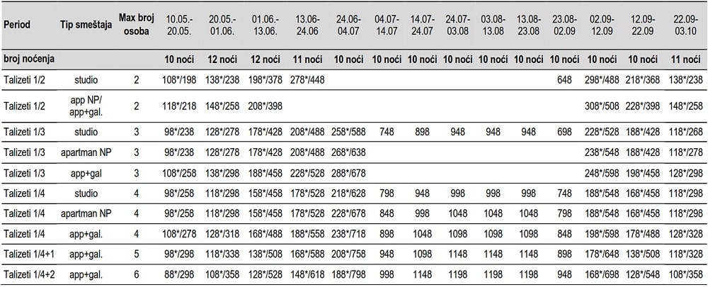 • Cena bez * predstavlja cenu najma smeštaja PO SMEŠTAJNOJ JEDINICI.