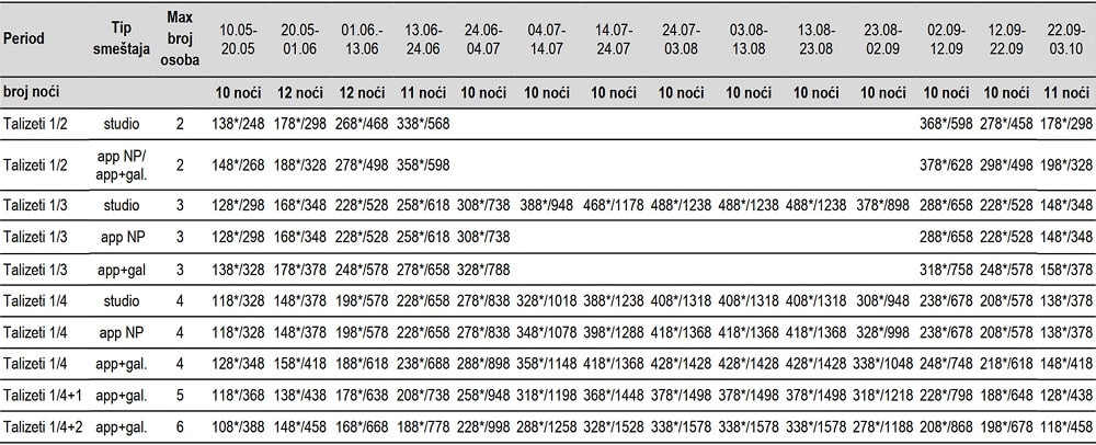 • Cena sa “zvezdicom” * predstavlja cenu paket aranžmana (smeštaj+prevoz) PO OSOBI.