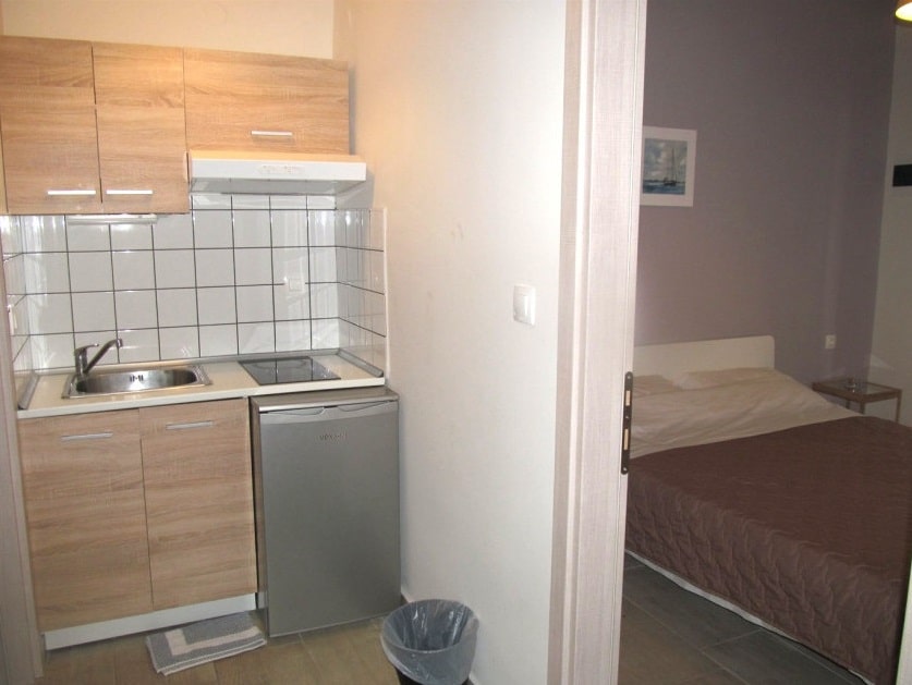Pojedini četvorokrevetni apartmani pored francuskog (u spavaćoj sobi) poseduju krevet na rasklapanje u kuhinjskom delu.