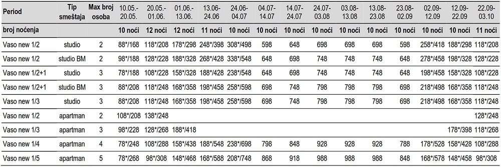 • Cena bez * predstavlja cenu najma smeštaja PO SMEŠTAJNOJ JEDINICI.