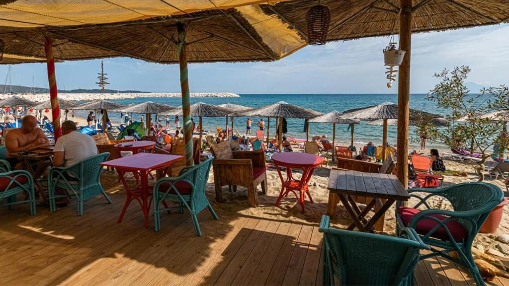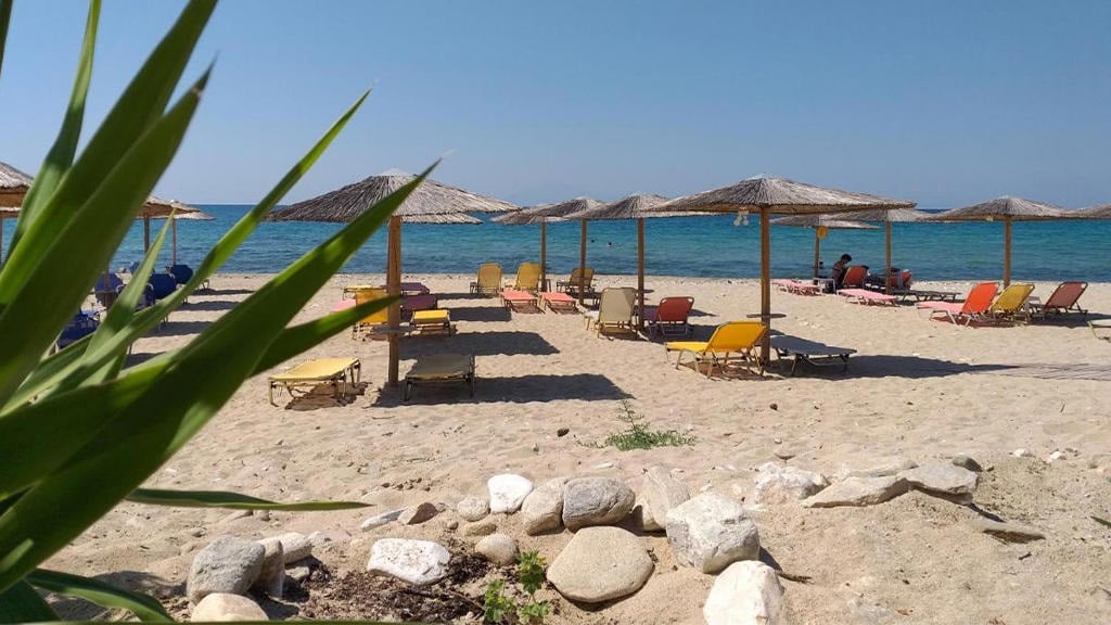 Na plaži, pripada hotelskom kompleksu Rachoni Resort koji se nalazi na jednoj od najlepših lokacija na Tasosu, u letovalištu Skala Rahoni, 12 km od Limenasa, glavnog grada Tasosa. Usluga polupansion...