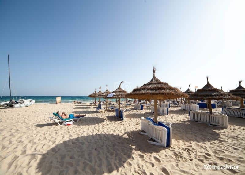 Plaža: Hotel ima svoju privatnu peščanu plažu koja se nalazi preko puta hotela, prelazi se manja ulica udaljenost oko 30m. Ležaljke i suncobrani se ne plaćaju, za peškire ostavlja se depozit 20 TND.